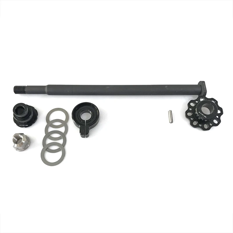 Die Anzahl der benötigten Distanzscheiben hängt vom Abstand zwischen Rahmen und Schwinge ab (Abstand so weit wie möglich reduzieren). Das Set enthält die folgenden Distanzscheiben:
